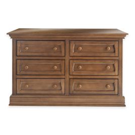 The baby appleseed 6 drawer double dresser showcases six spacious lower dresser drawers and upper shelving with three extra drawers for smaller items.